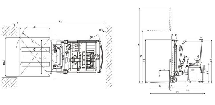 4.21 | 通道宽度,托盘800*1200(1200沿货叉放置) | Ast(mm) | 3150 | |